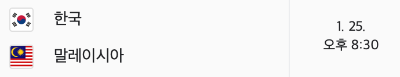 한국과 상대하는 3팀 중 최약체로 지목되는 말레이시아와는 1월 25일 오후 8시 30분에 경기를 치르게 된다.